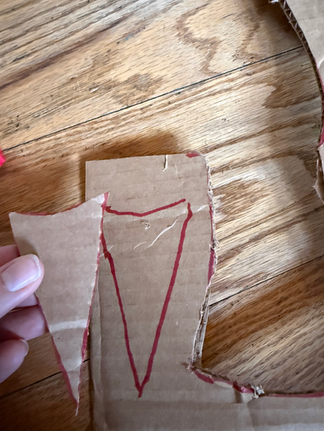 I recommend printing both pages and taping them end to end. This will be your stencil to cut out the axe head on cardboard. Tape these two connected pages on top of the cardboard and cut through both. The tape will help it not move around while your cutting. I used a box cutter, but you can use some really good scissors to cut the shape out. Just beware of what is underneath your cutout if you are using a box cutter (don't want you to scratch your nice surfaces underneath).